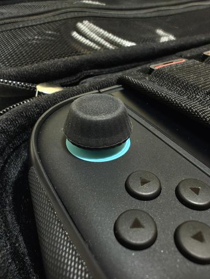左スティックを山型、右スティックをつぶつぶじゃない方の平たいやつにしています。山型以外の平たい2つは一番外まで倒したときにカバーの回り込んだ部分が軸よりも先に当たる感触があるので、ややソフトに感じられるかも。